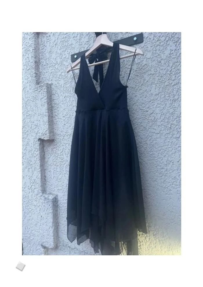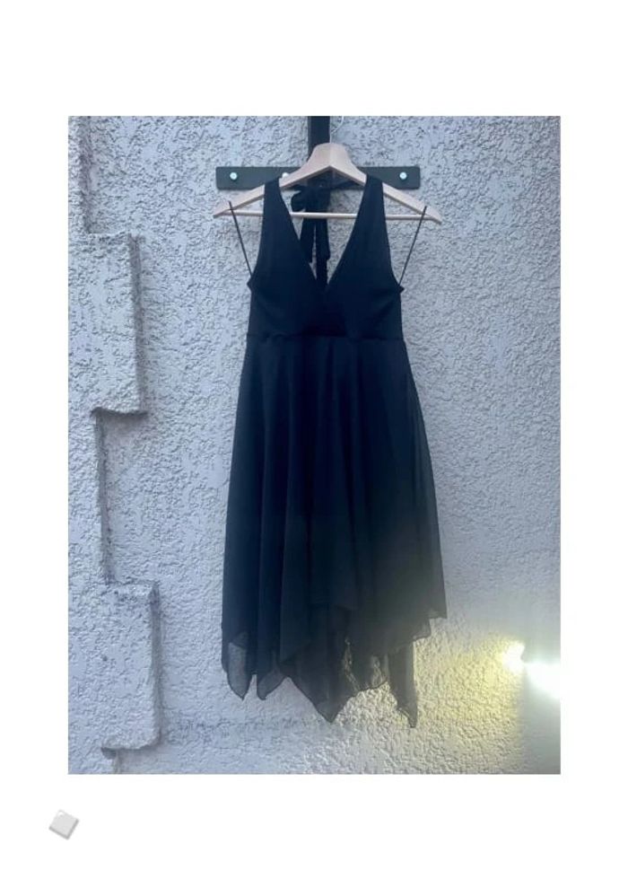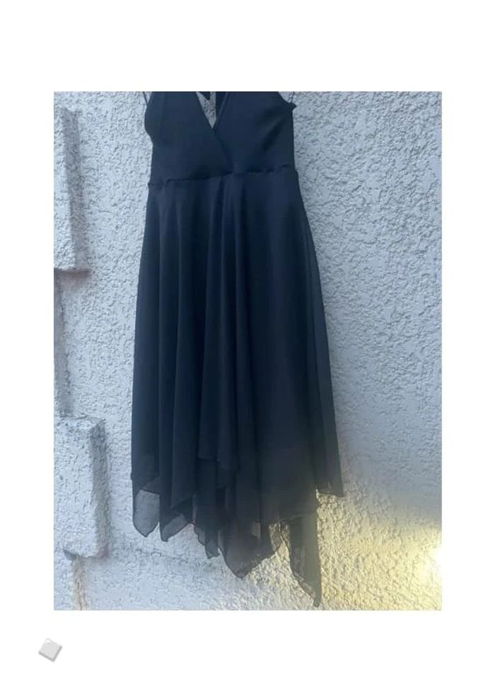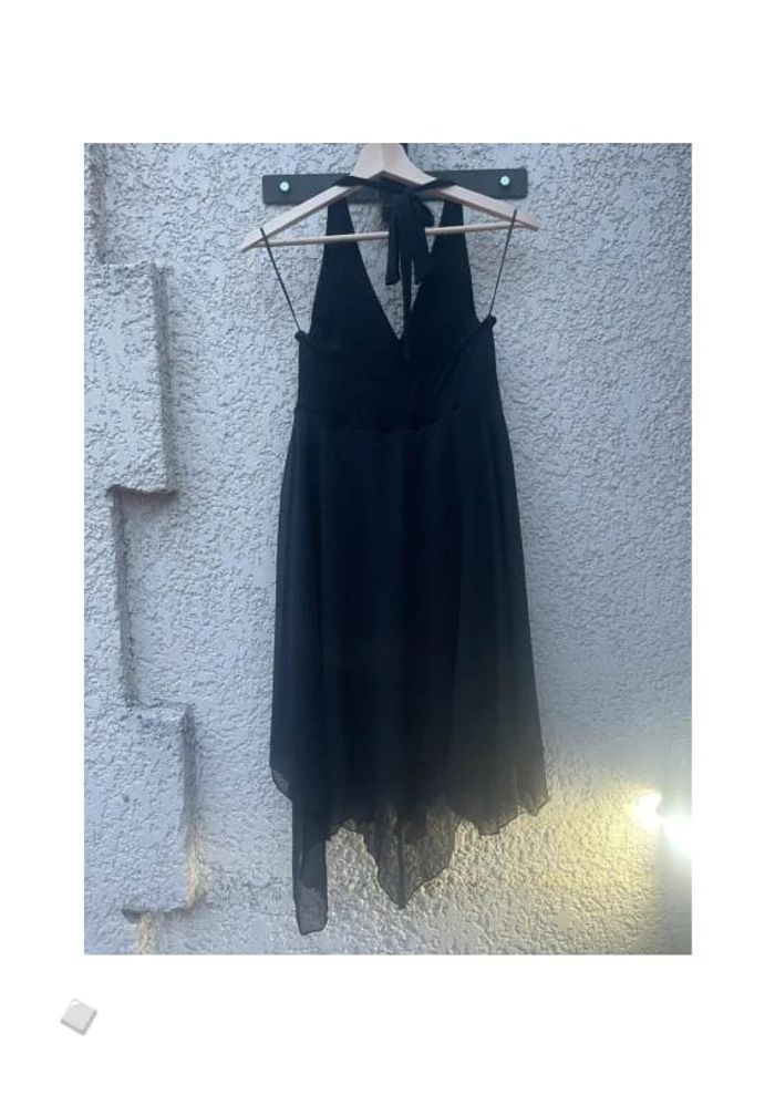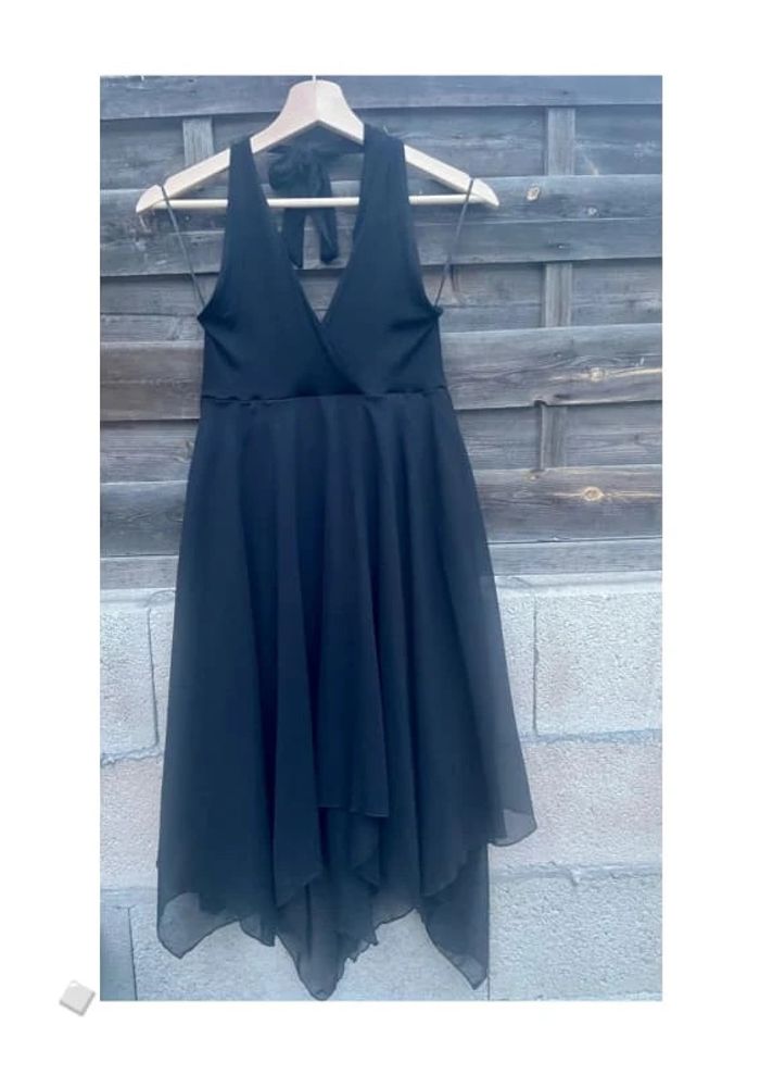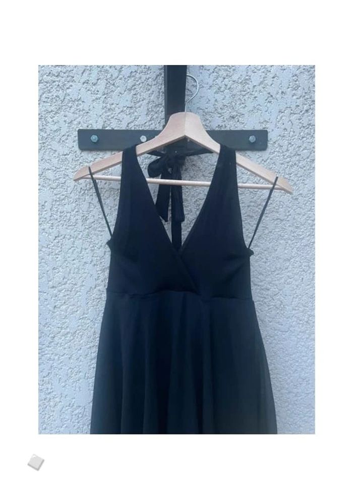 Robe voilage longue noire avec décolleté et haut du dos nu Bretelle se noues autour du cou Idéal en soirée, mariage, baptême etc. #jennyspearstailles