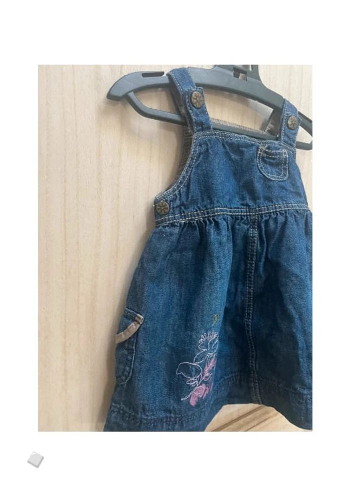 Liquidation ! Robe type salopette avec bretelles et petite poche devant et deux sur le côtés Broderie fleurs. Doublure sous la robe. #jennyspearsbebefille6mois