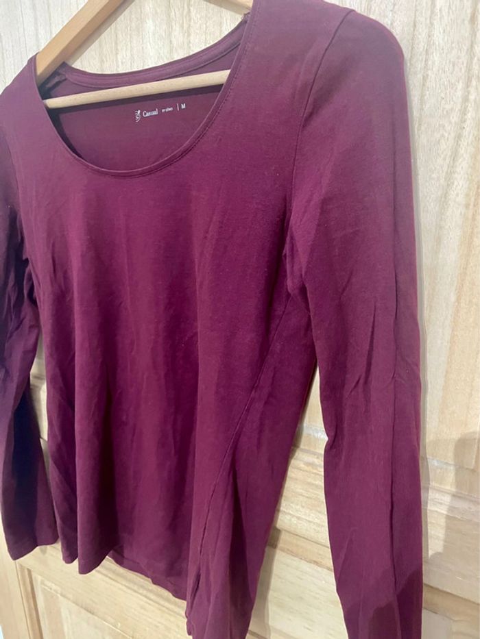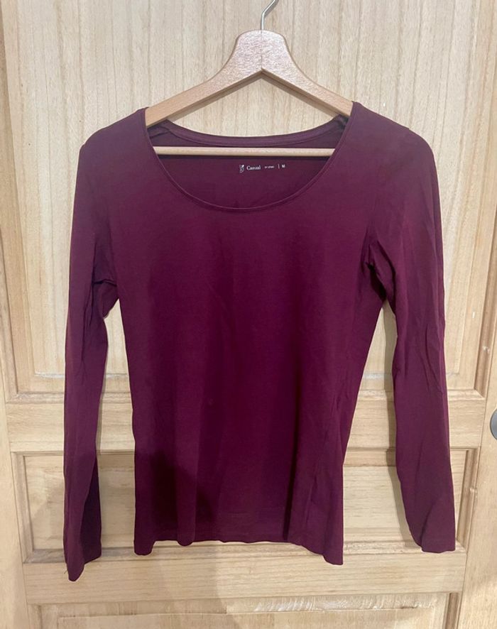 Haut basic uni bordeaux manches longues simple taille M - photo numéro 1