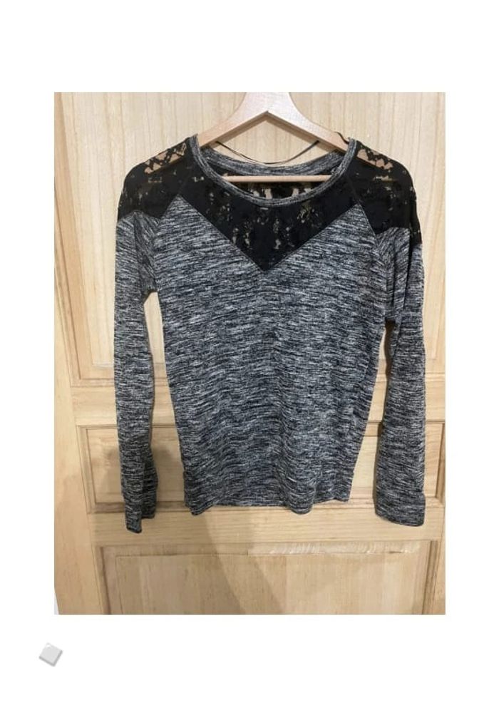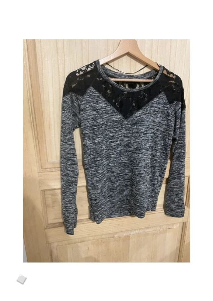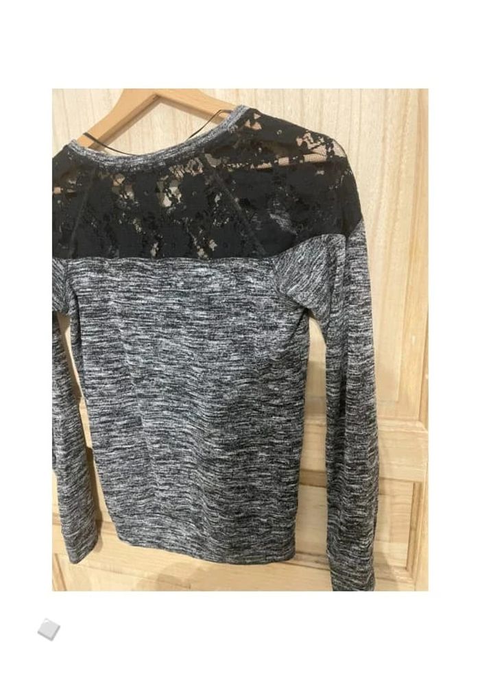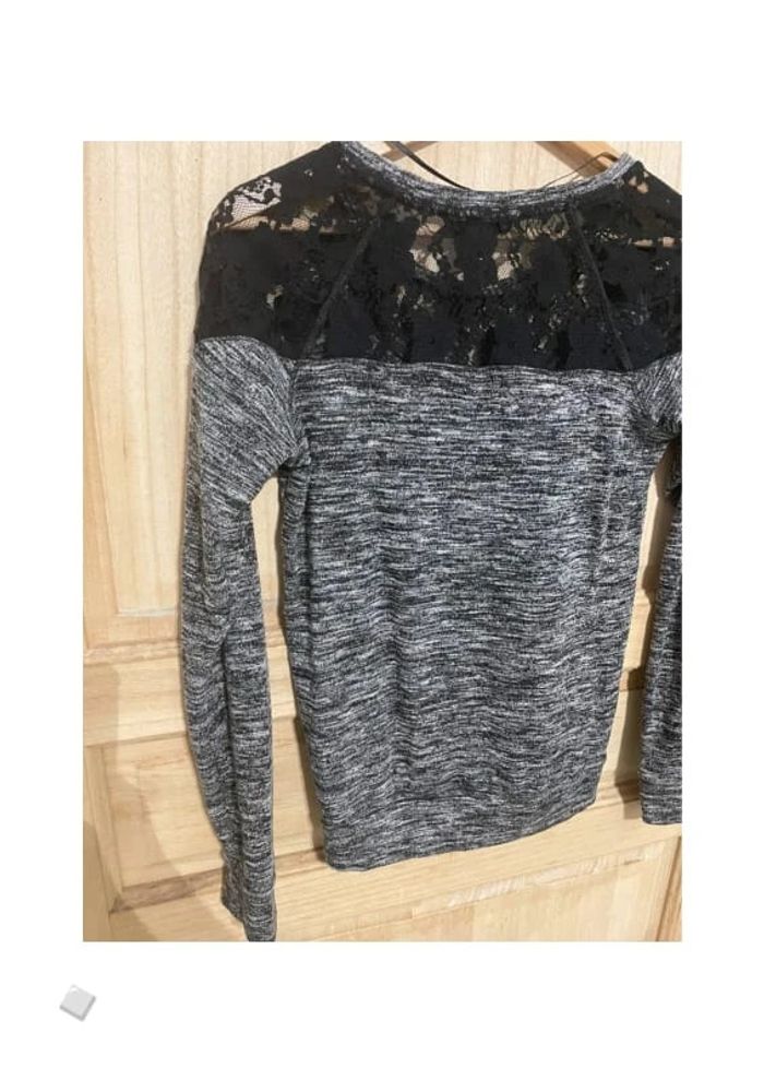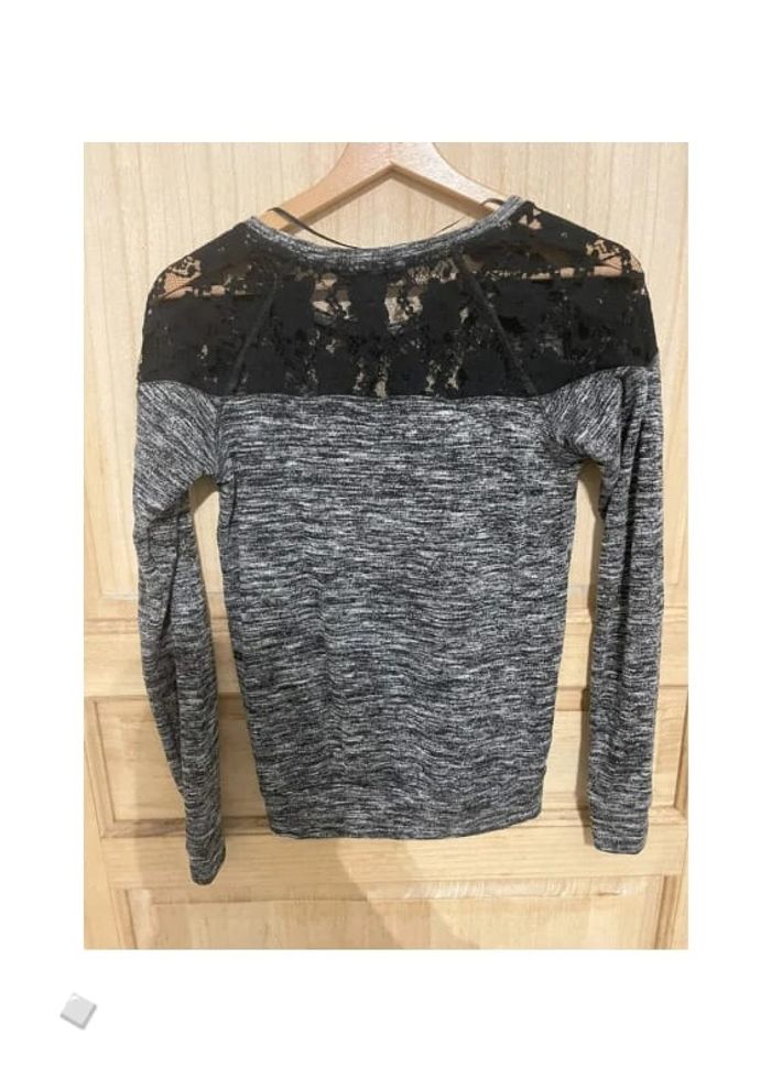 Petit pull gris avec dentelle avant et arrière