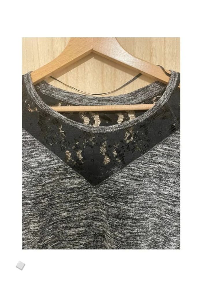 Petit pull gris avec dentelle avant et arrière - photo numéro 1