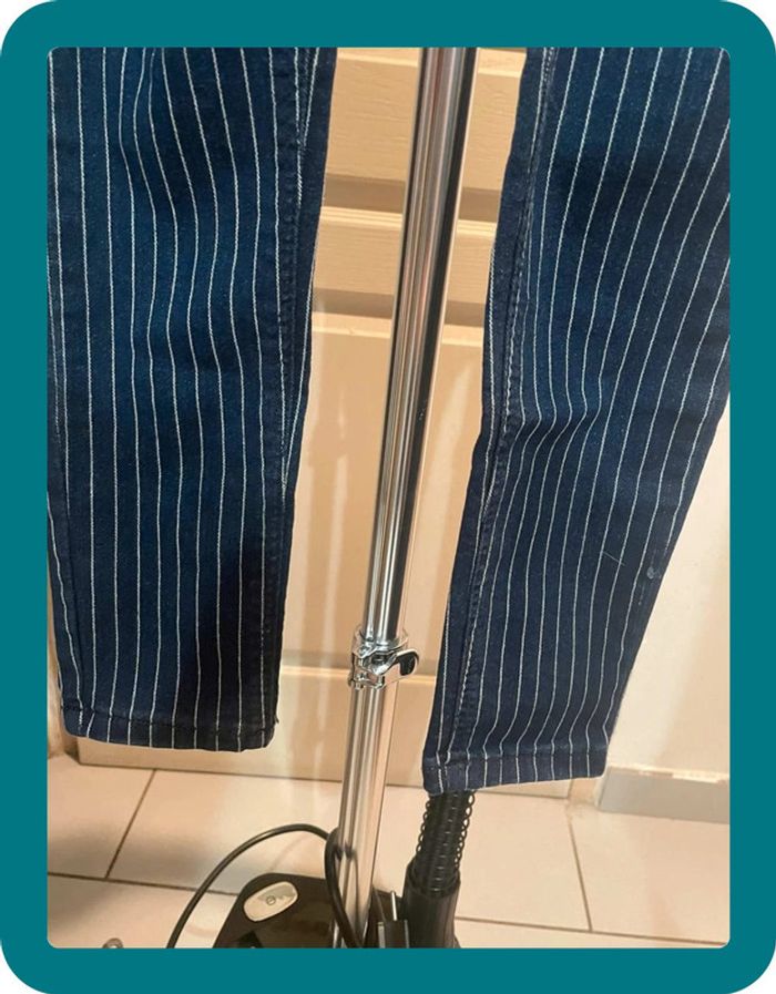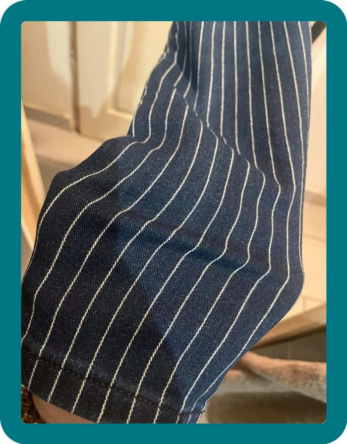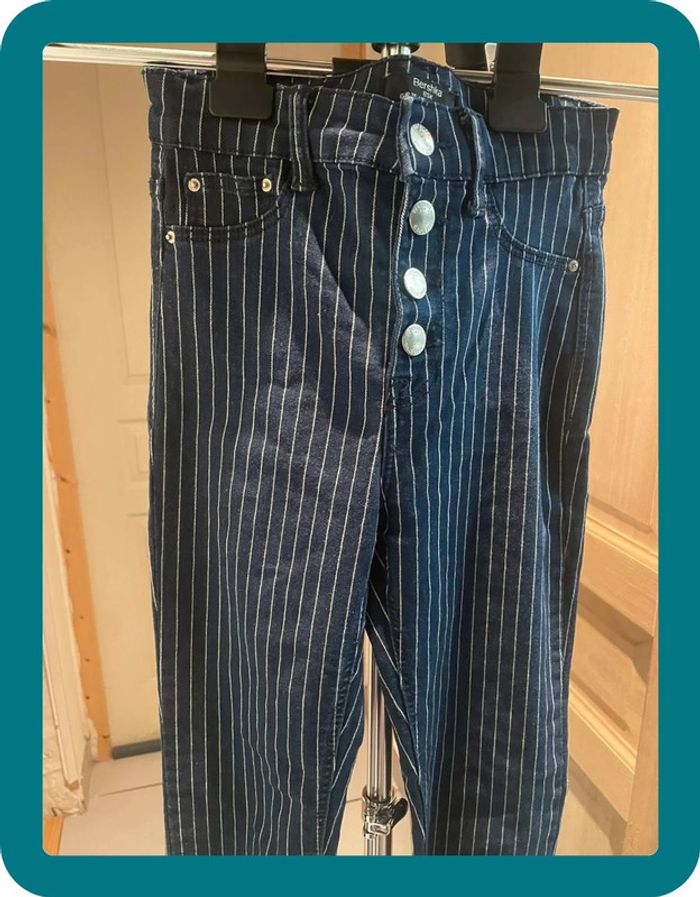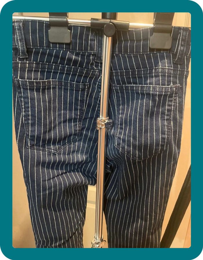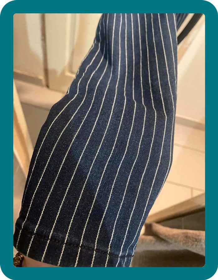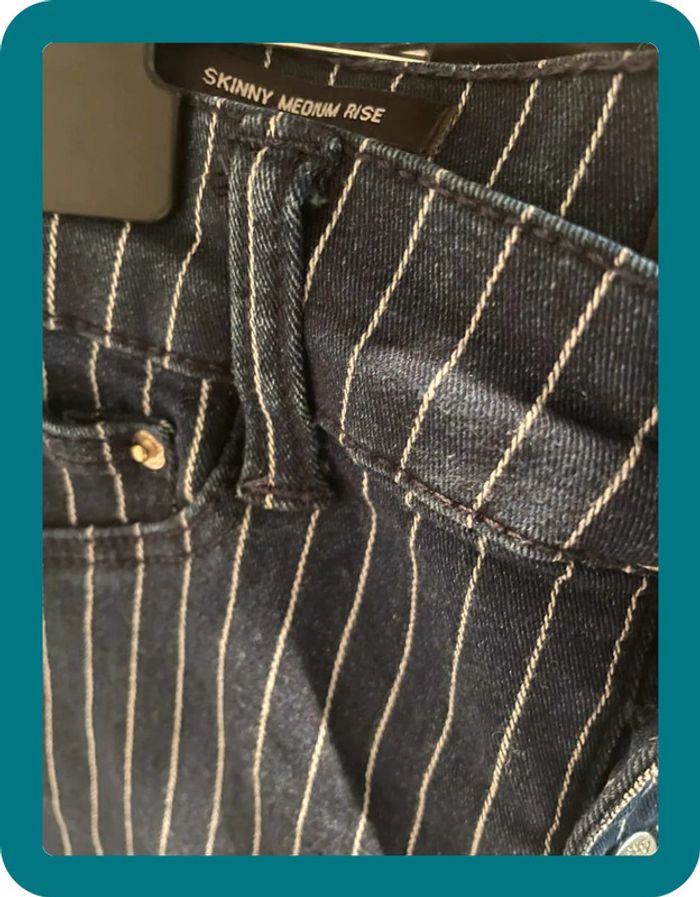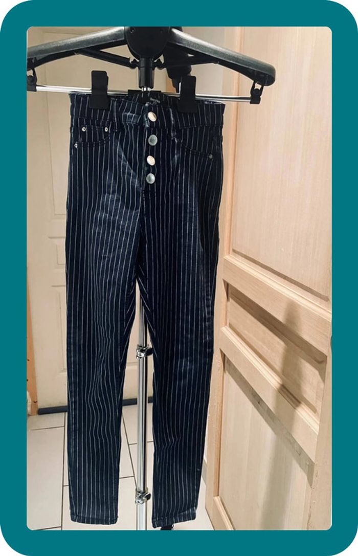 Pantalon skinny, a rayures blanches Fermeture a 4 boutons Medium rise - taille medium Très élastique Devant poches factices #jennyspearstailles #pantalon #pantalonfemme #pantalonskinny #skinny #tailleS #S #pantalonapoches #pantalonélastique #bershka #36 #taille36