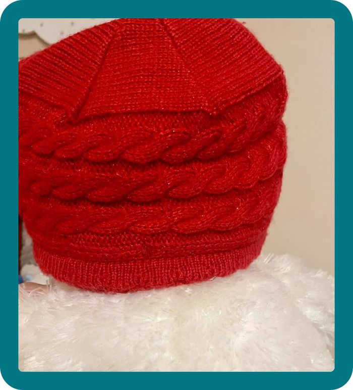 Bonnet tressé rouge avec liseret brillant et petit noeud #jennyspearsbebefille
