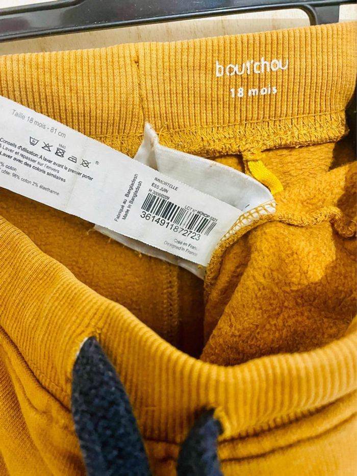 Jogging jaune moutarde avec cordon bleu marine à la taille 18 mois Une micro tache sous la poche voir dernière photo #jennyspearsbebe18mois
