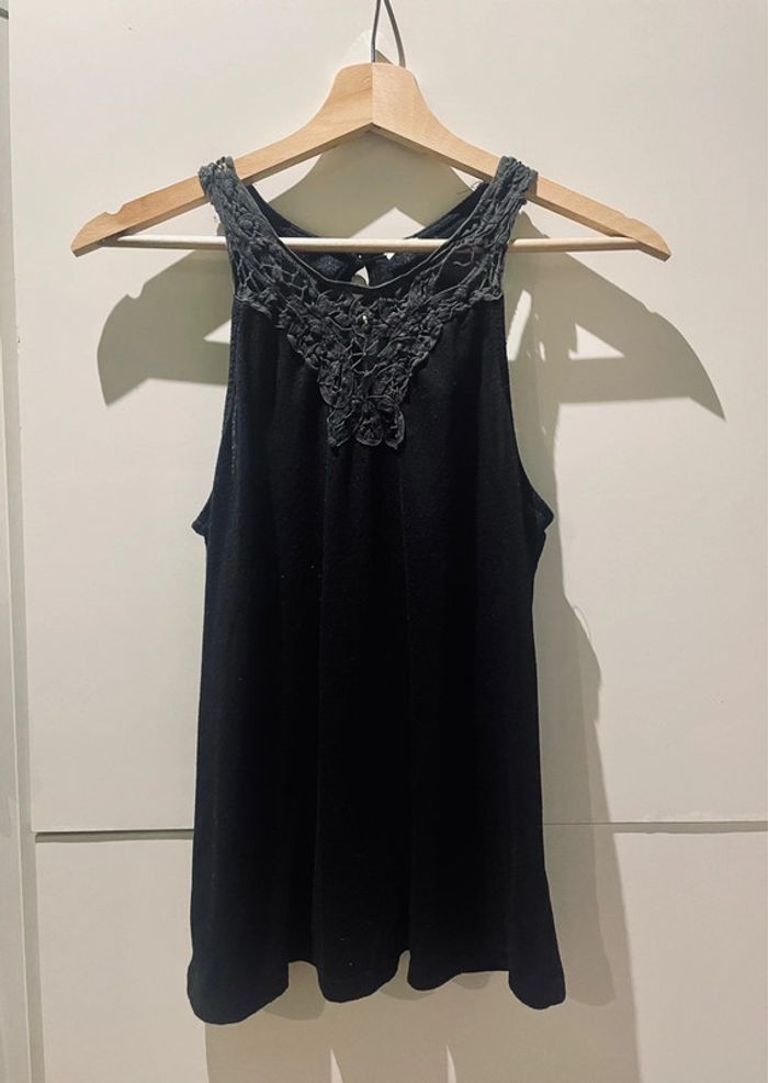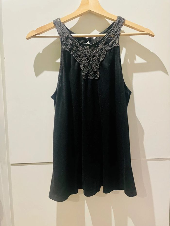 Débardeur avec dentelle sur le haut et petite attache à l’arrière Mis “bon état “ juste par rapport au temps, usure de plusieurs lavages en machine sinon il est en tes bon état mais quand même mis à un prix bradé 😇 #jennyspearstailleM