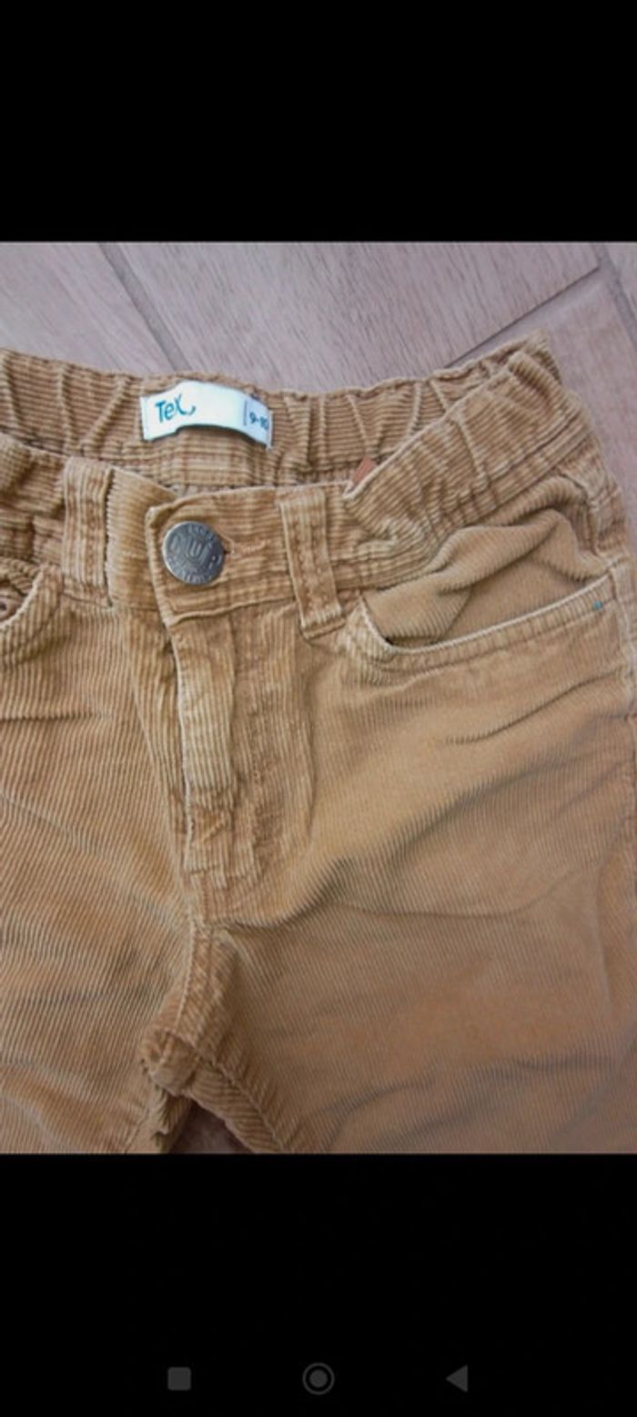 Pantalon en velours couleur moutarde, marques d'usures aux genoux réglable en largeur, étiqueté 9-10 ans #mariol69110garcon10ans