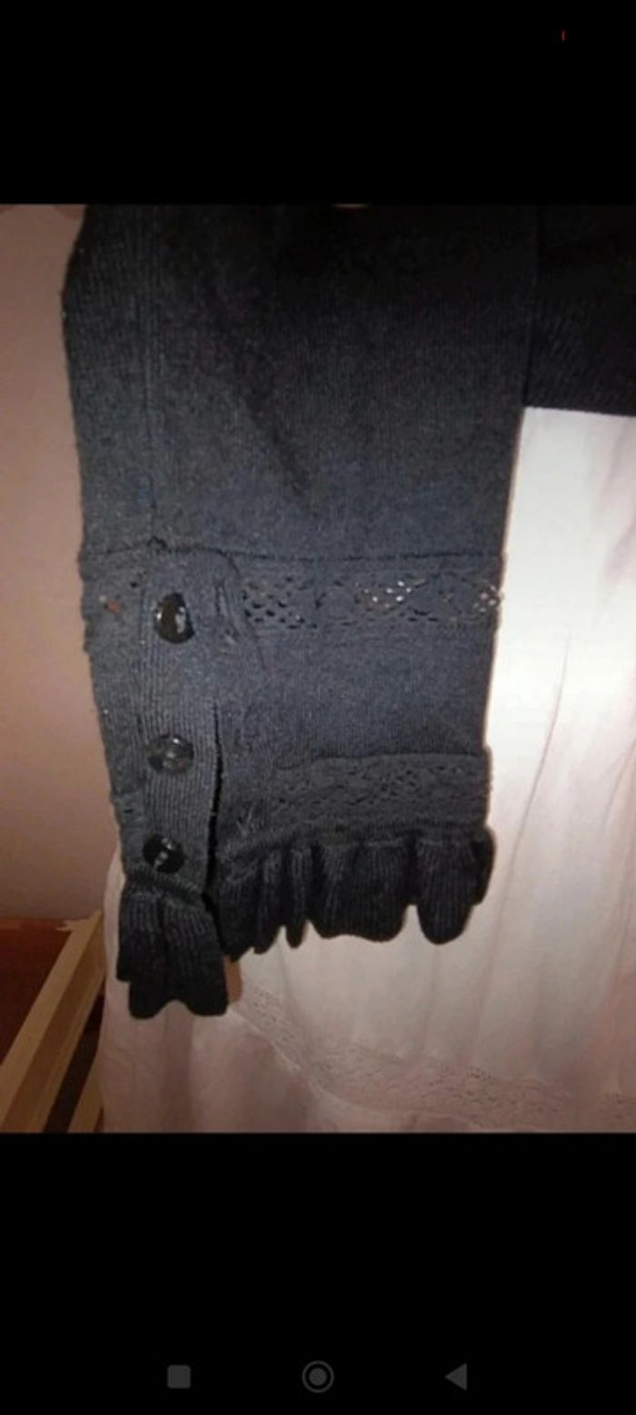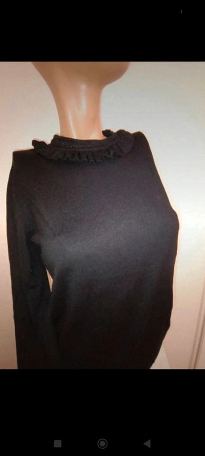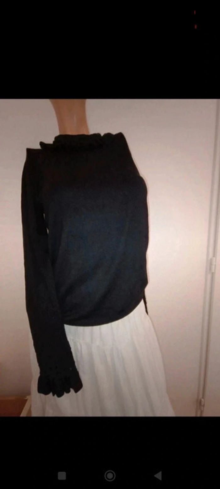 Joli pull noir à col à volant, effet dentelle sur le col et les manches #mariol69110femme36