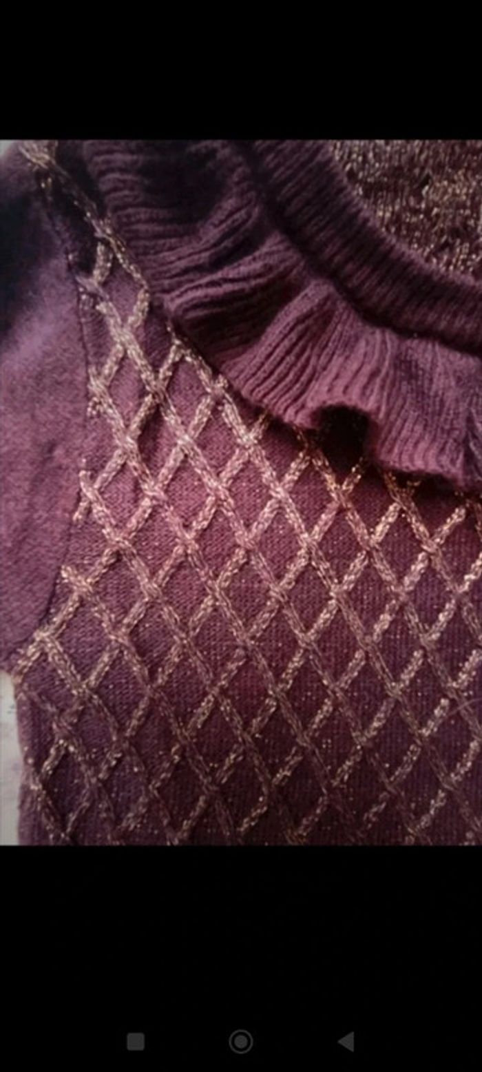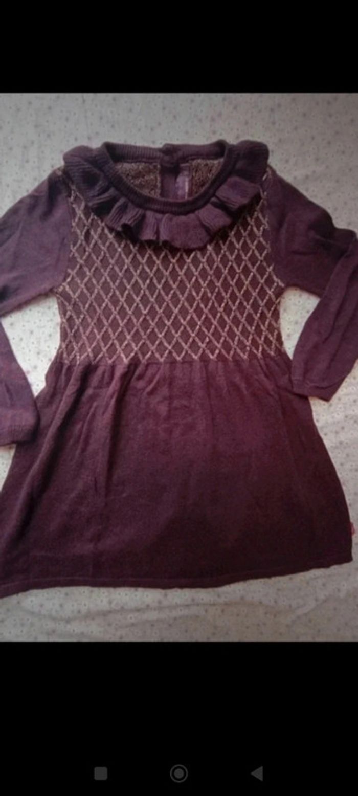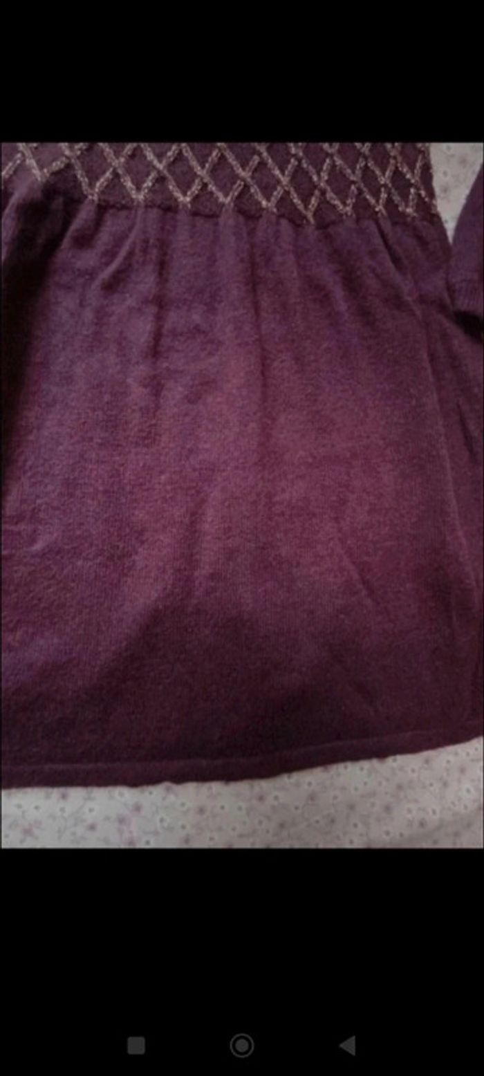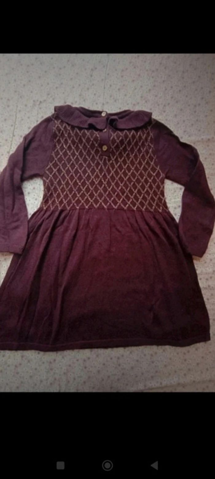 Jolie robe en lainage couleur violine/lie de vin Petit col rond, broderies en fils doré sur ma poitrine, petits boutons dorés au dos #mariol69110fille3ans