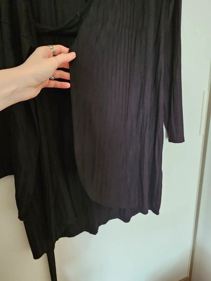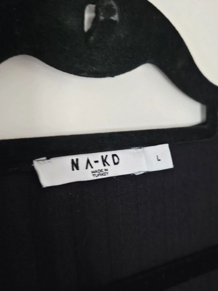 Jolie robe Na-kd taille L (convient à un 40 ou à un 42) Étiquette matière coupée Matiere fine extensible avec effet rayures/cotelé Manches longues Un lien à passer dans la robe et à nouer autour de la taille Effet asymétrique sur le devant avec découpes arrondies plus courtes sur l'avant Portée quelques fois, très bon état Parfaite avec des sandales ou des bottes !