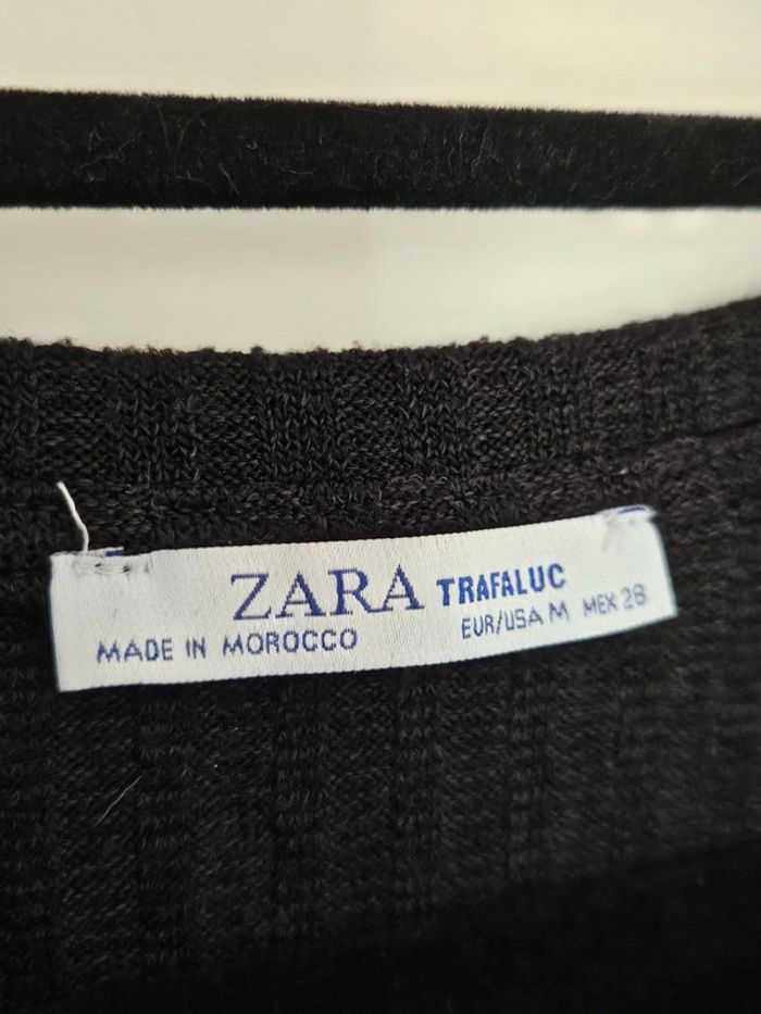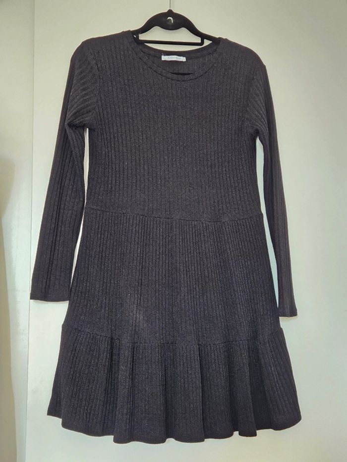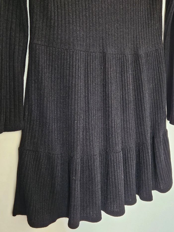 Robe pull en maille fine côtelée Zara Taille M mais coupe ample qui convient à un 40 Manches longues Col rond Matiere extensible Jeu de couture façon volants Coupe large évasée Très bon état