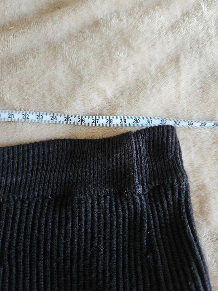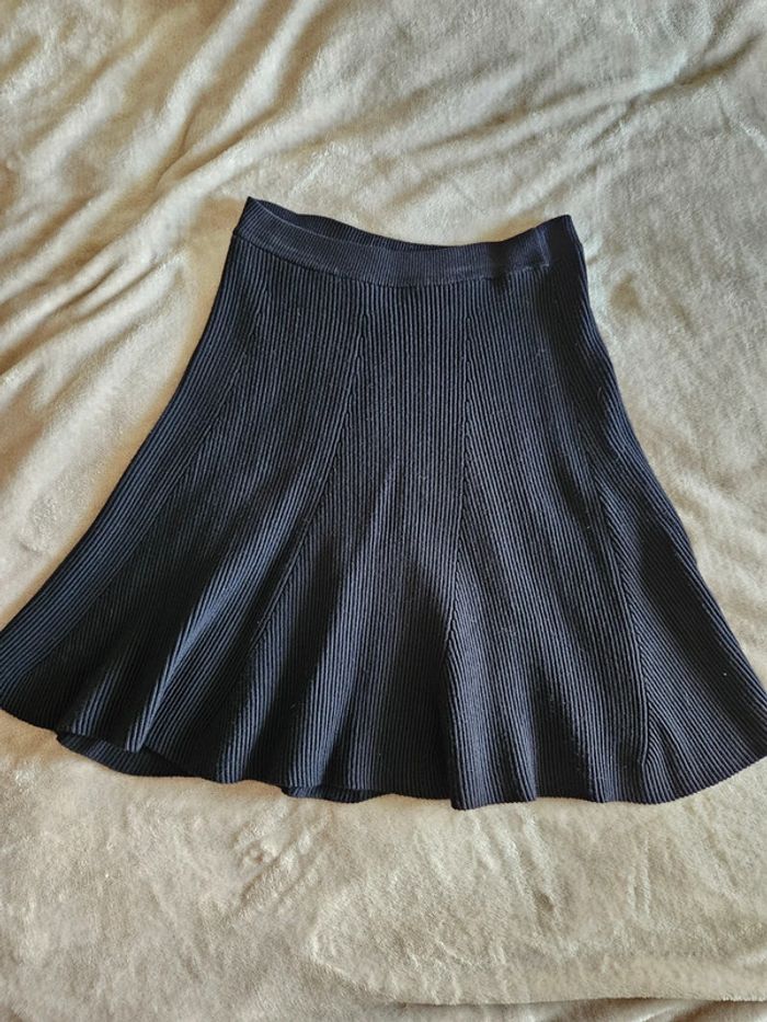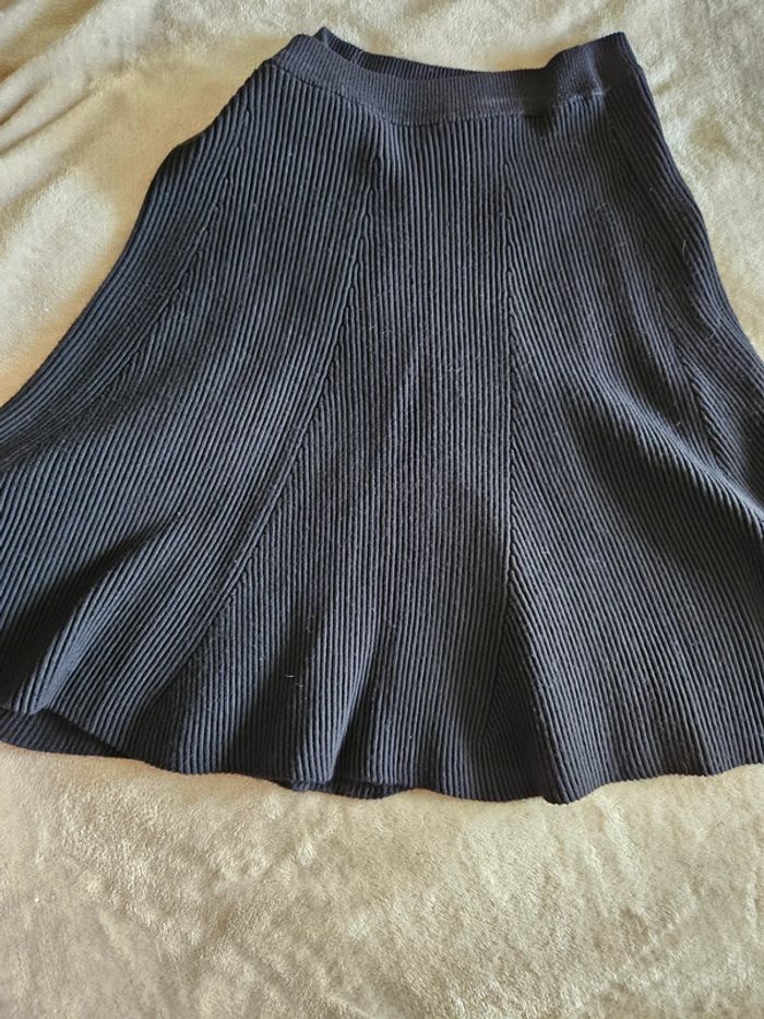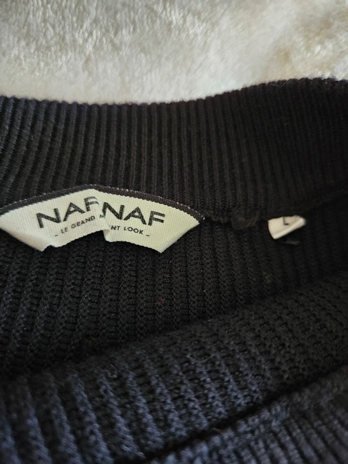 Jupe en maille extensible Nafnaf Taille L Forme trapèze évasée Le haut est ajusté à la taille - elle se porte taille haute Maille fine côtelée extensible Très agréable à porter, très bon état Mesures en photo