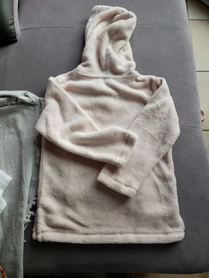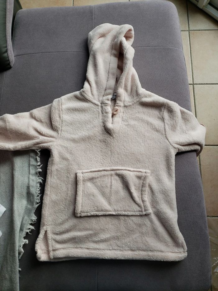 Pull polaire à capuche rose pâle Poche kangourou devant La Halle Très bon état Taille : 3/4 ans (taille grand)