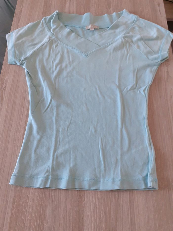 T-shirt bleu ciel col V Clara Vitti Taille 1 Très bon état #steph27121femme36 #steph27121femme38