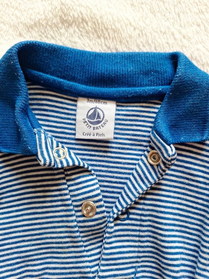 Body polo manches courtes Marque Petit Bateau Taille 3 mois Couleur blanc et bleu rayé Très bon état #3mois #3moisgarcon #garcon3mois #pingpong1994_3mois