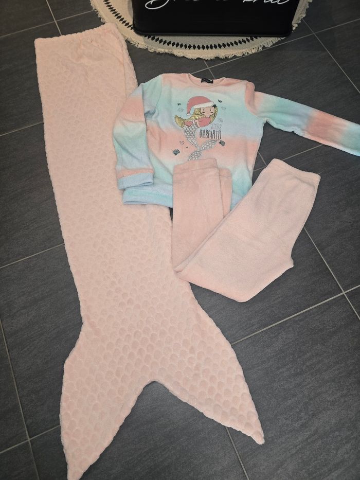 Bonjour 👋 👉Je vend ce pyjama sirènes 3 pièces 12 ans - pull+ pantalon+ couverture queux de sirènes -mis une fois -rose et bleu motif sirènes Maison 🏚 🏠 non fumeur et sans animaux