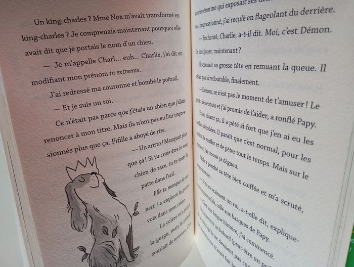 Et si du jour au lendemain, vous deveniez... chien ? Charlie est un enfant-roi. La preuve, il porte une couronne sur la tête. Couvé par ses parents, il fait la loi partout où il passe : il terrorise les chiens de son quartier, méprise ses camarades d'école... jusqu'au jour où une sorcière, pour le punir, le transforme en chien King Charles ! Aidé par une bande de cabots affectueux, il devra tout faire pour retrouver forme humaine, et même tenter de devenir plus gentil ! Éditeur ‏ : ‎ Poulpe Fictions Broché ‏ : ‎ 168 pages Âge de lecture ‏ : ‎ 8 - 12 ans Dimensions ‏ : ‎ 14.4 x 1.6 x 21.1 cm Livre en très bon état #chien #couronne #roi #enfantroi