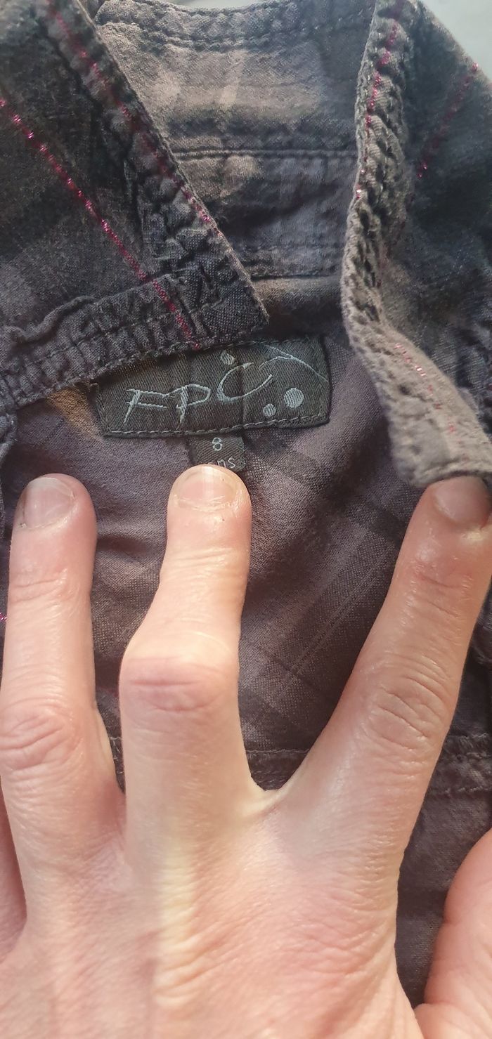 Chemise manches longues grise et rose Manque 1 bouton voir photo 8 ans FPC