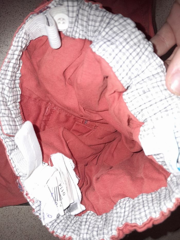 Short en très bon état de taille 24mois avec des poches devant. Celles de derriere sont des fausses. Il est de taille ajustable. Dans mon dressing il y a d'autres short de cette taille.