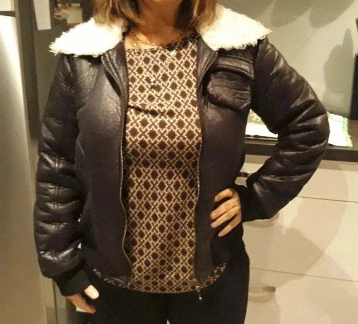 Blouson noir très bon état Porté quelques fois Taille L/40 La laine ne s'enlève pas Poche devant et sur les cotes qui se ferment avec fermeture éclair #sabrina668340