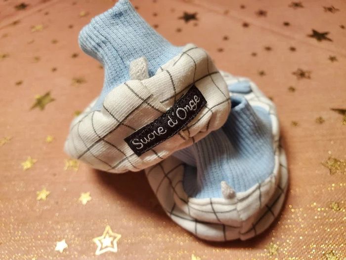 Petits chaussons bébé garçon Sucre d'Orge en molleton imprimé blanc/bleu. Composition : 96% coton 4% élasthanne. taille 3/6 mois En très bon état N'hésitez pas à consulter mes autres articles, je fais un grand tri. #sabrina66833mois #sabrina66836mois