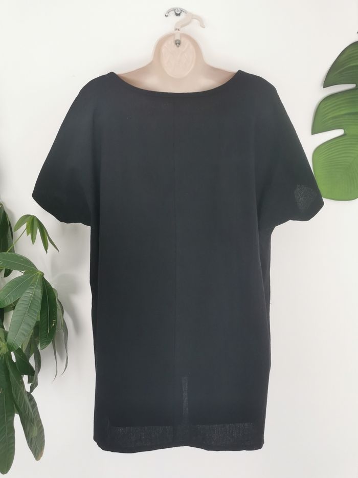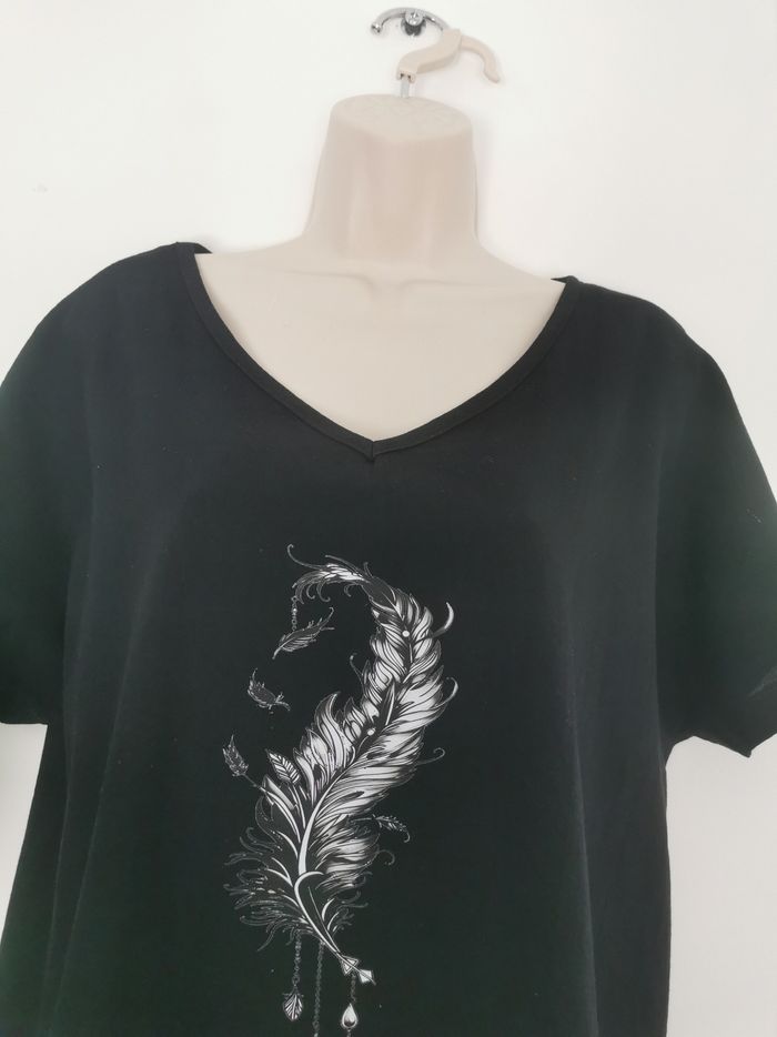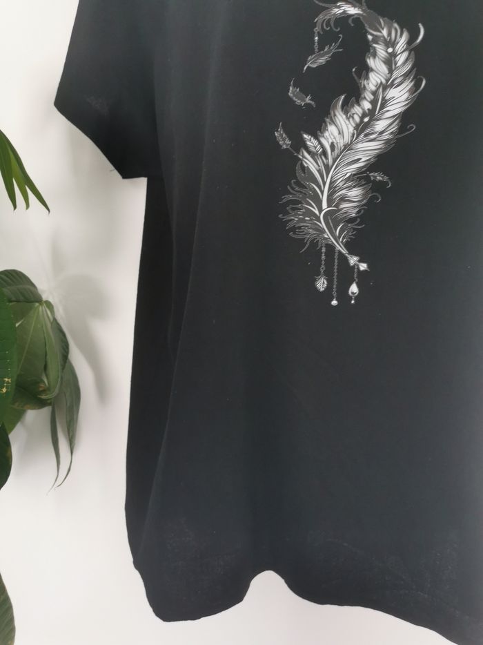 Tee-shirt noir texturé effet lin motif plume Taille XL - photo numéro 2