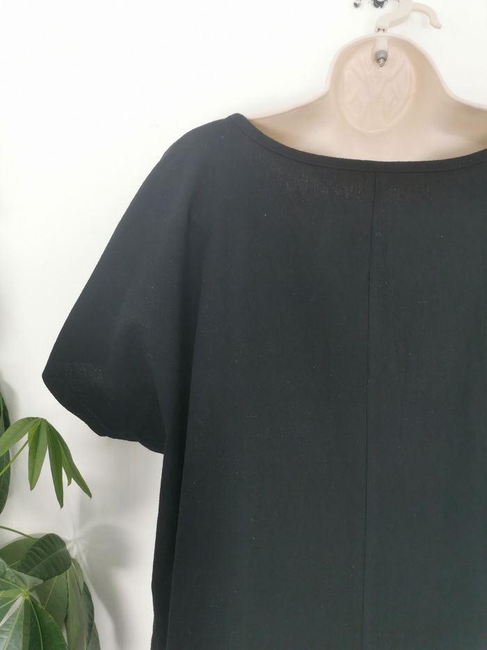 Tee-shirt noir texturé effet lin motif plume Taille XL - photo numéro 7