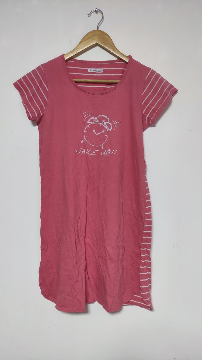 Robe de nuit Taille 36 Rose poudré et blanc Marque Inextenso Matière coton, polyester Un mini point de couture à faire voir photo Sinon en très bon état