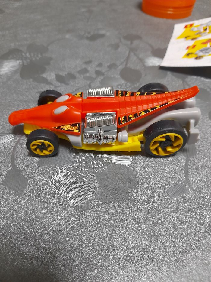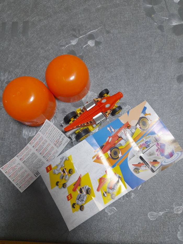 Figurine Maxi Kinder Hot wheels Taille de la voiture 12 cm environ Très très bon état avec sont œuf et sa notice