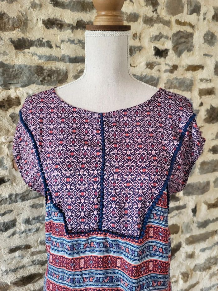 T-shirt blouse manches courtes bleu rose gris Promod Taille S ou 36 - photo numéro 1