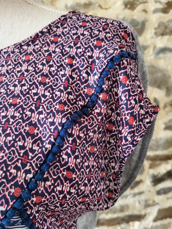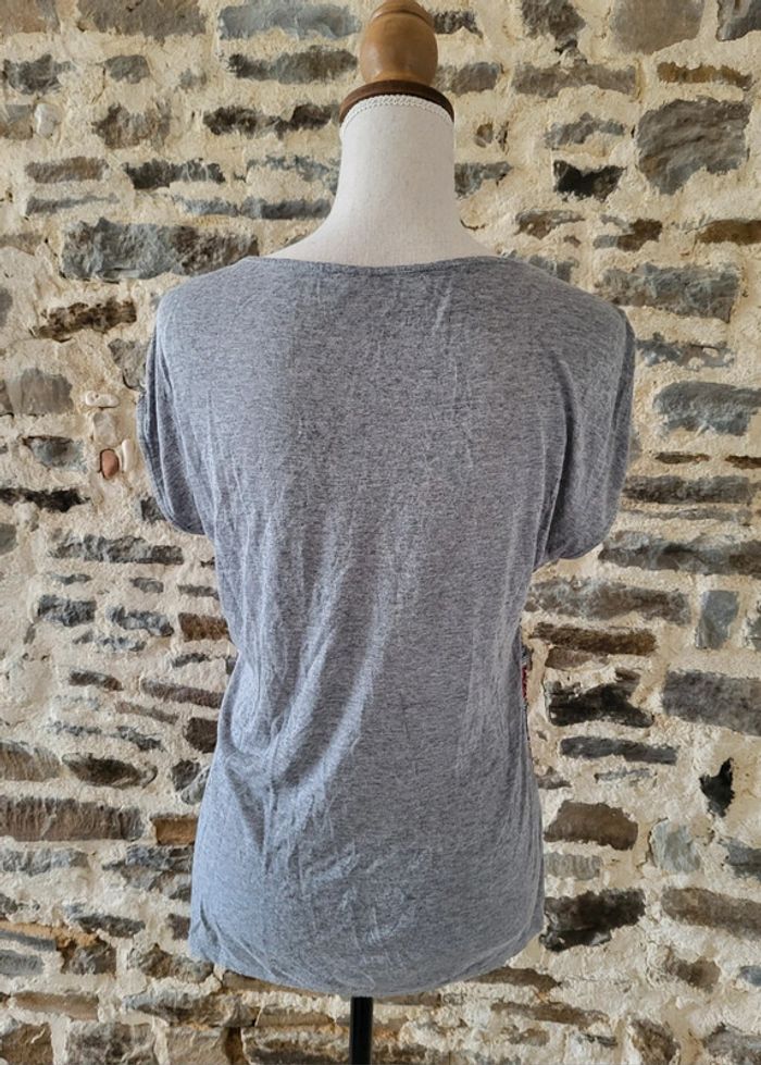 T-shirt blouse manches courtes bleu rose gris Promod Taille S ou 36 - photo numéro 2