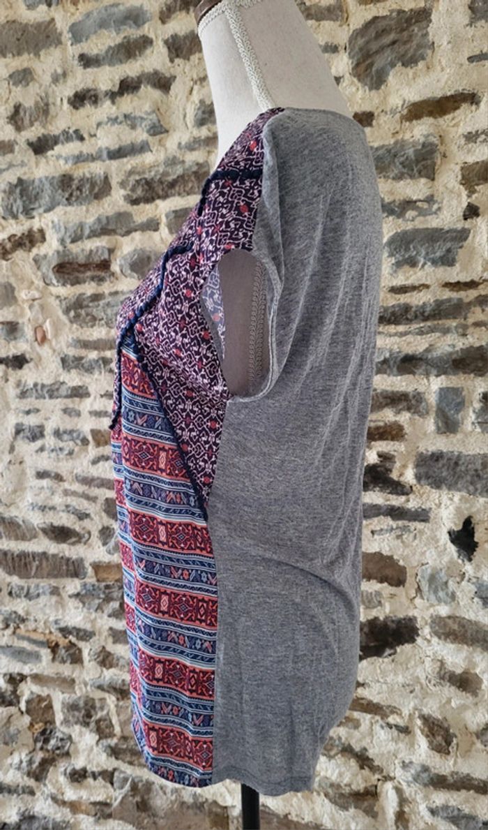 T-shirt blouse manches courtes bleu rose gris Promod Taille S ou 36 - photo numéro 7