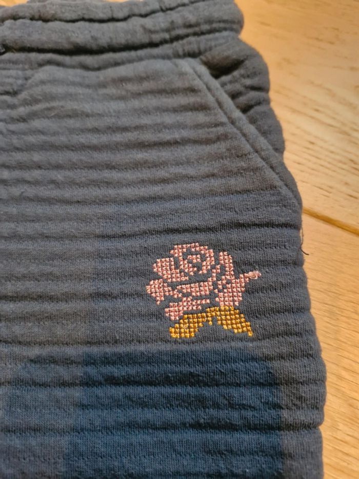 Porté mais très bon état Petit acro au genou... je ne sais pas coudre mais ça se reprend bien Très confortable