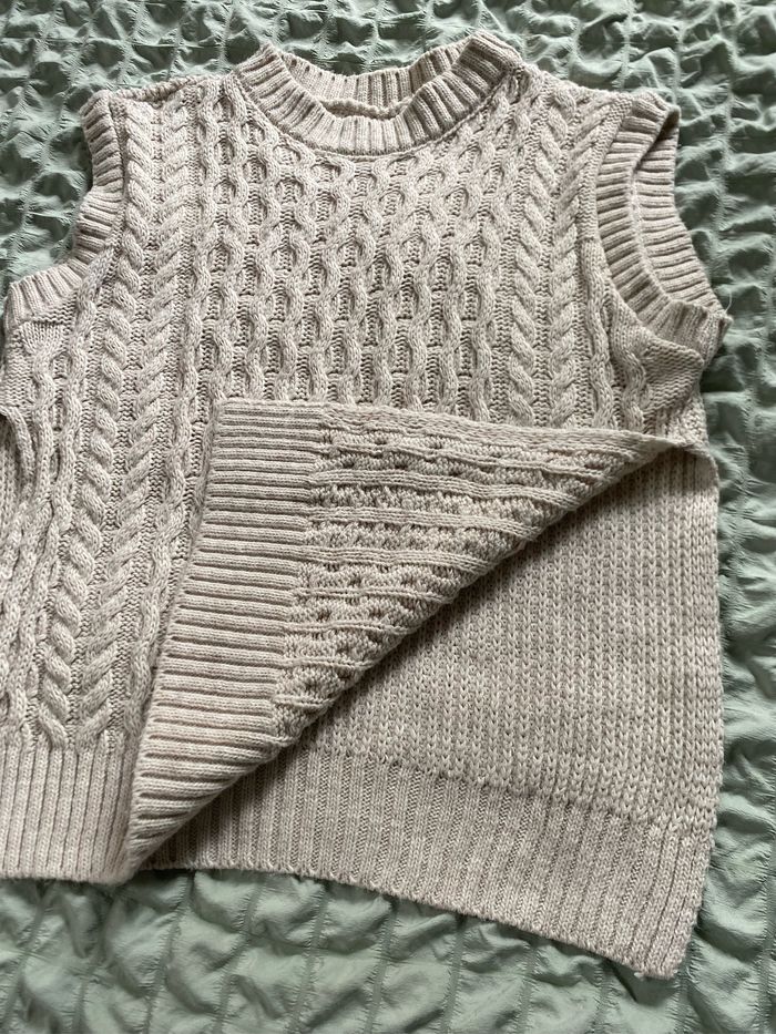 Pull fendu beige torsades S/M Ming - photo numéro 4