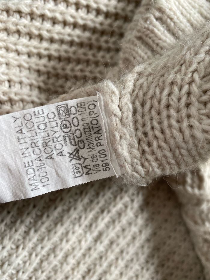 Pull fendu beige torsades Taille S/M 36/38 Fabriqué en Italie Ming 100% acrylique Carrure sans le bord côte 38,5 cm Aisselle à aisselle 49 cm Longueur 52,7 cm