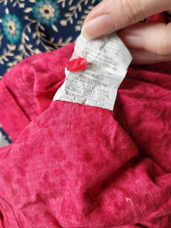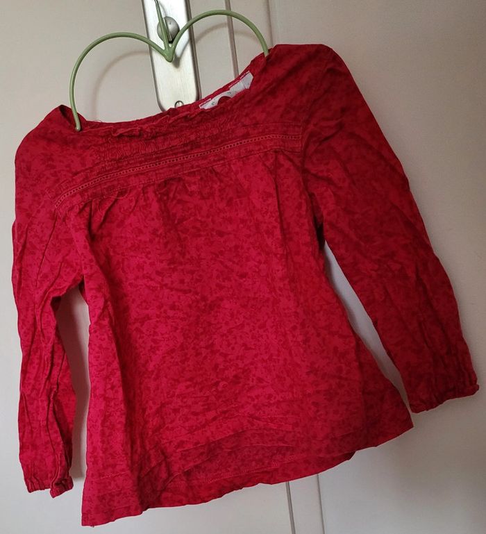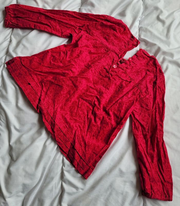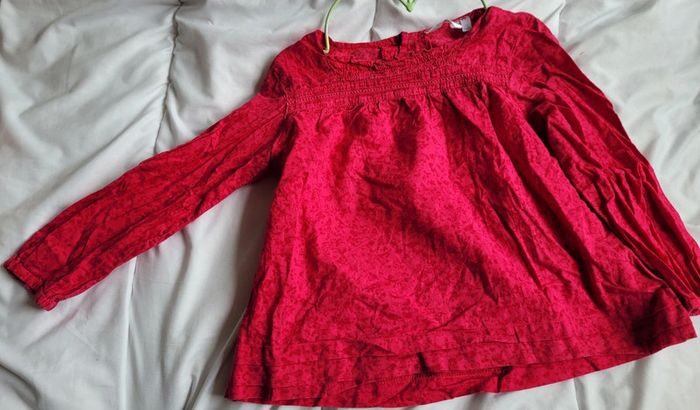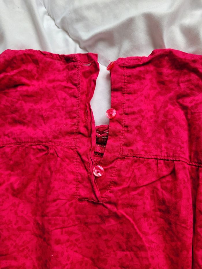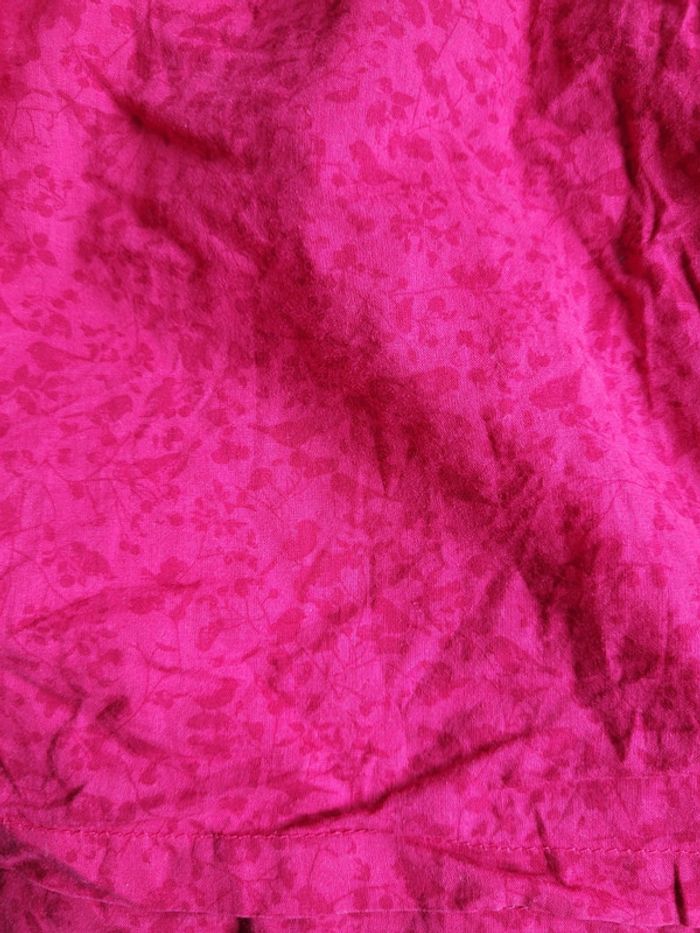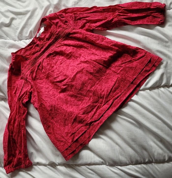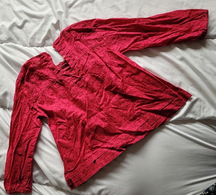 Très jolie blouse, légère, couleur framboise rose à manches longues. Taille 4 ans marque KidKanai Stretch au niveau du torse et des poignets. Elle se ferme par 3 boutons (toujours nickel) à l'arrière. Motifs d'oiseau et de cerisiers, couleur exacte sur la 8ème photos. Elle a été portée mais reste en très bon état . Toujours jolie. Tbe. Bouton de rechange toujours cousu sur l'étiquette. #T4ans_baptlily