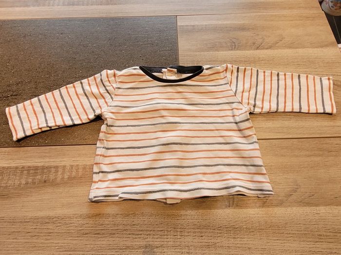 T-shirt à manches longues rayé blanc et orange Sucre d'orge garçon 12 mois - photo numéro 2