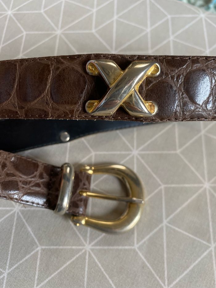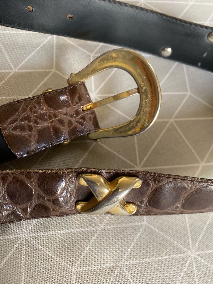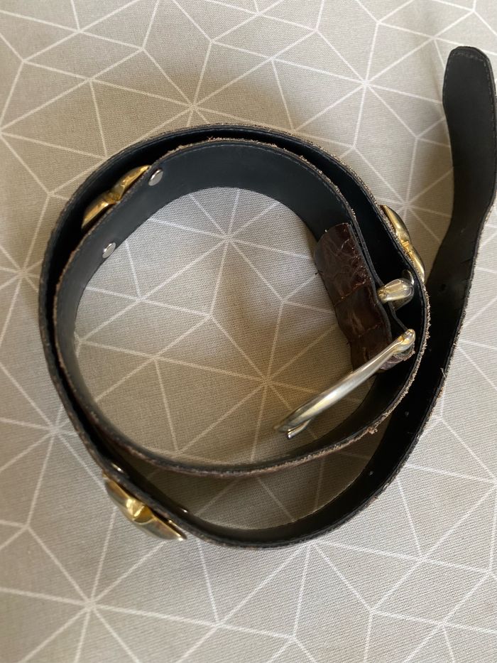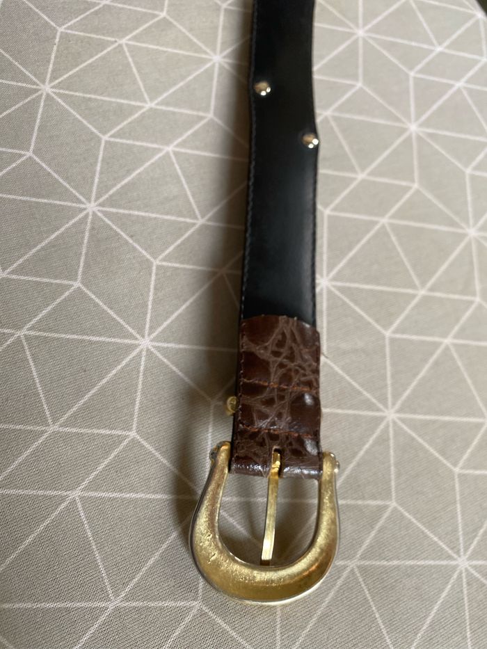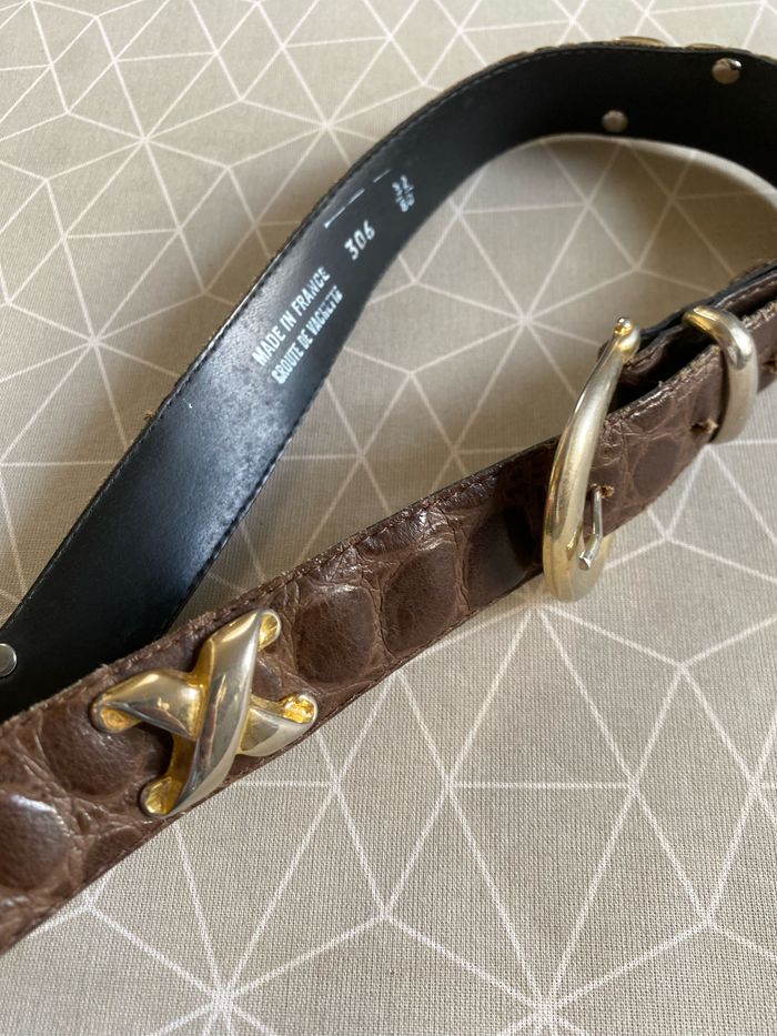 Ceinture marron croco vintage 32/80 croûte de vachette - photo numéro 9
