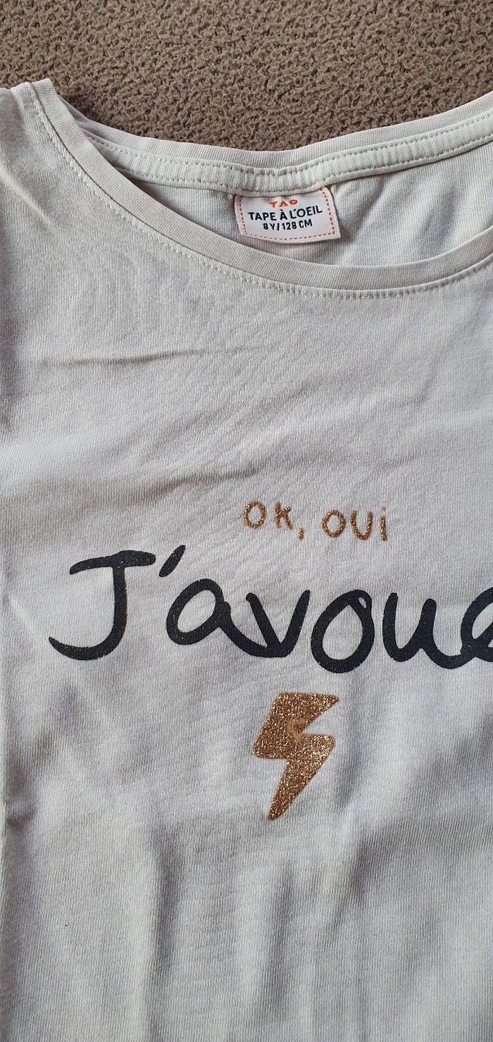 Maillot manches longues blanc 2 petites tâches de velleda voir photo 8 ans Tape à l'oeil