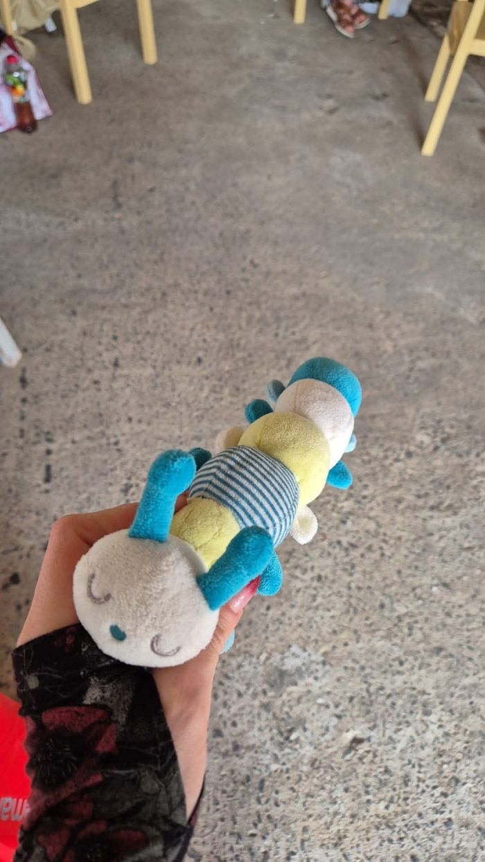 Chenille d’éveil qui fait différents bruit en fonction de la zone où l’on appuie pour stimuler l’éveil, le sensoriel et la curiosité de bébé