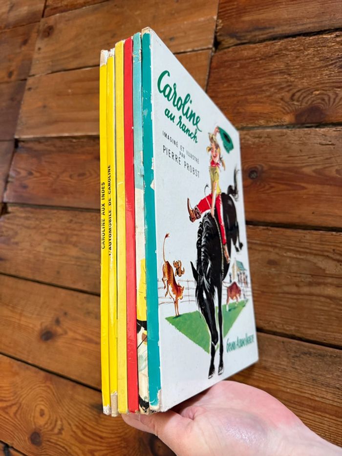 Lot d’ouvrages COMPLETS et en BON ÉTAT pour des bd de plus de 60 ans (ce sont les premières éditions de ces livres Caroline à l’humour incroyable et aux illustrations à pleurer de beauté et d’émotion). 🙏☺️ Lot non dissociable et non négociable comportant les titres suivants : Caroline au Pôle Nord Une fête chez Caroline Caroline au Ranch L’automobile de Caroline Caroline aux Indes Les vacances de Caroline
