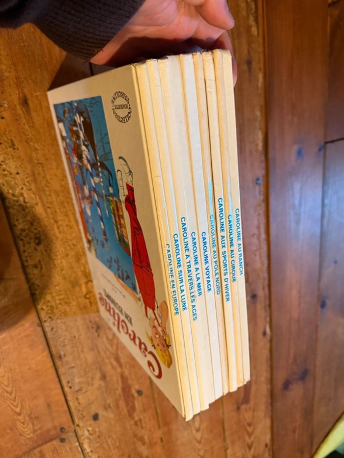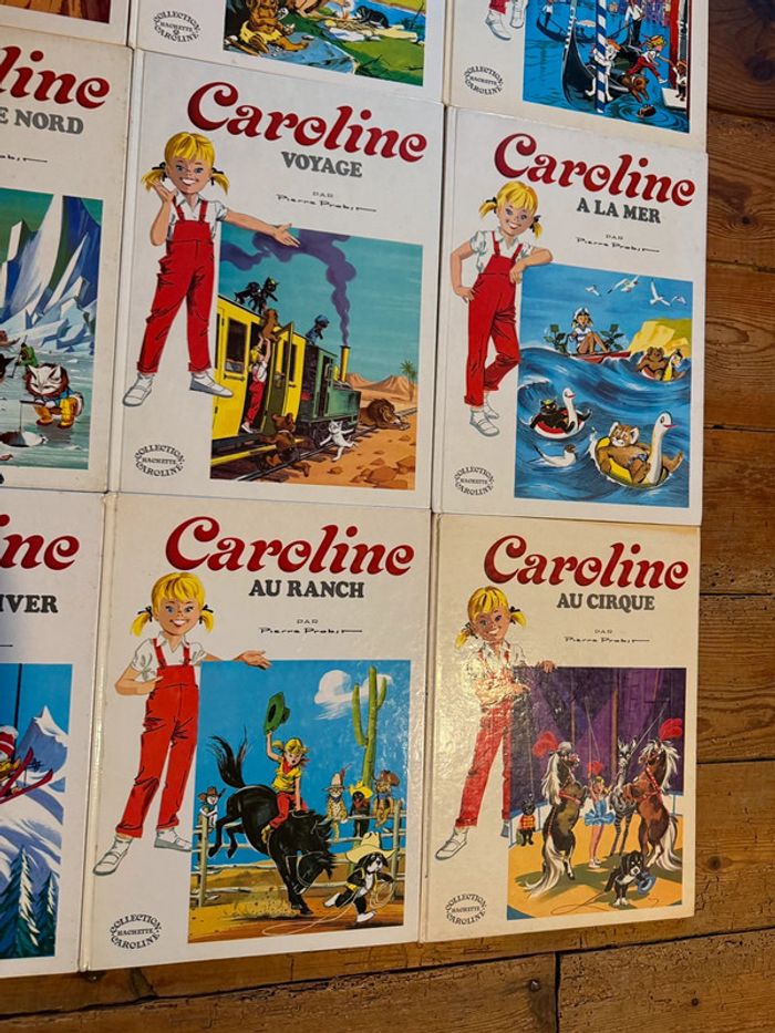 Envoi rapide et soigné État TRÈS BON pour des livres de plus de 50 ans - et tous complets ☺️ RARE DANS CET ÉTAT d’en rassembler autant !!… Non négociable! Liste des titres de ce très beau lot : Caroline au Ranch Au cirque Aux sports d’hiver Au pôle Nord Voyage À la mer À travers les âges Sur la Lune En Europe