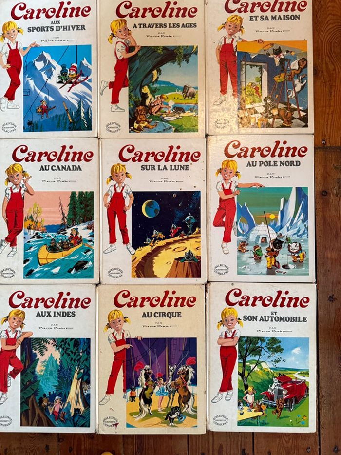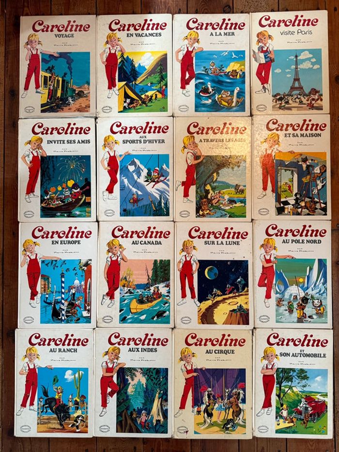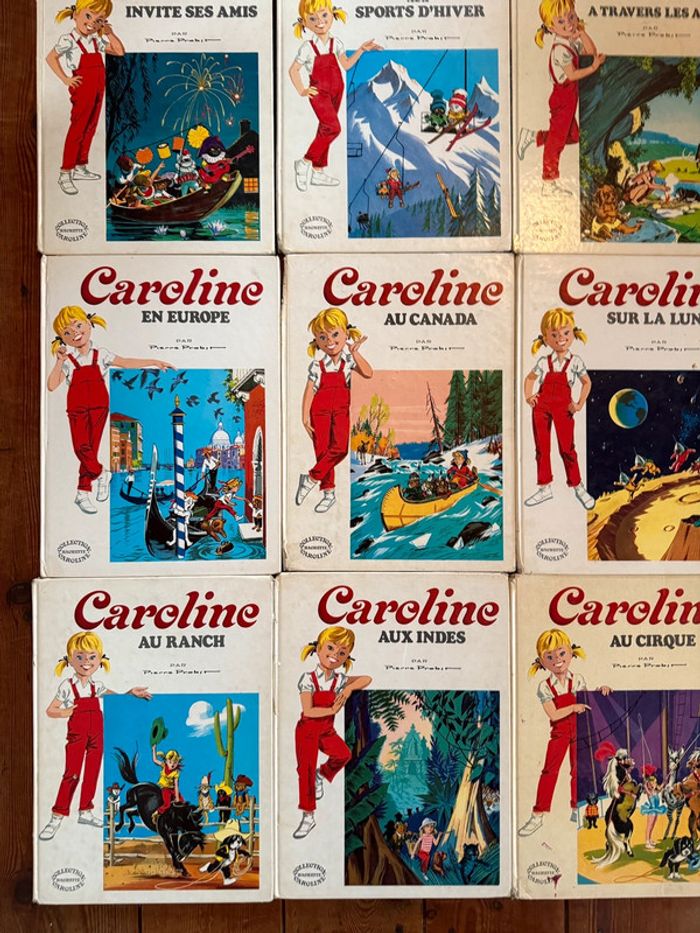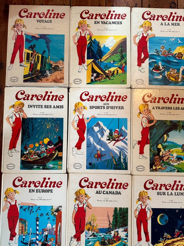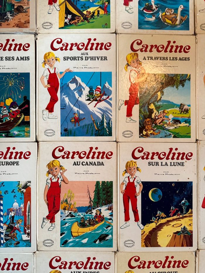 Envoi rapide et soigné État satisfaisant - moyen cf photos, mais tous complets ☺️ Intégrale de tous les titres de cette série sauf 1 (Randonnée). Non négociable! Liste des titres : Caroline voyage En vacances À la mer Visite Paris Invite ses amis Aux sports d’hiver À travers les âges Et sa maison En Europe Au Canada Sur la Lune Au pôle Nord Au ranch Aux Indes Au cirque Et son automobile