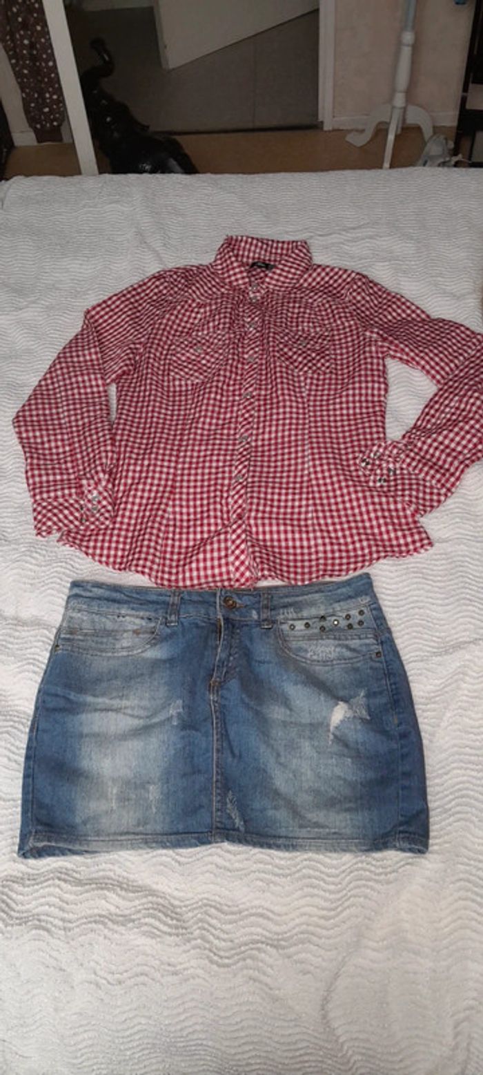 Très bon état jupe en jeans et chemise en parfait état #verovero62taille36