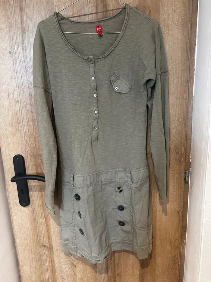 Robe casual kaki miss Captain taille 36 Jolie bouton sur la bas de robe effet jupe #julie34680_femme_t36 #robe #misscaptain