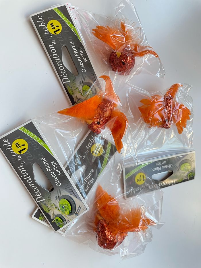 Décoration de fête neuves: 4 paquets avec un oiseau fait de plumes et de paillettes sur tige afin de pouvoir les accrocher Idéal pour décorer vos événements ✨ possibilité d’en avoir plus ✨Lot possible avec d’autres articles alors n’hésitez pas #fête #mariage #décoration #bapteme #anniversaire