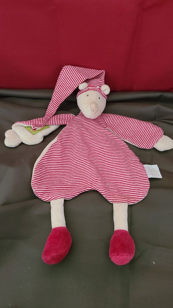 Doudou Souris Balthazar et Valentine rayé beige rouge MOULIN ROTY - photo numéro 2