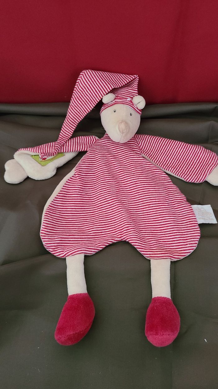 Doudou Souris Balthazar et Valentine rayé beige rouge MOULIN ROTY - photo numéro 1
