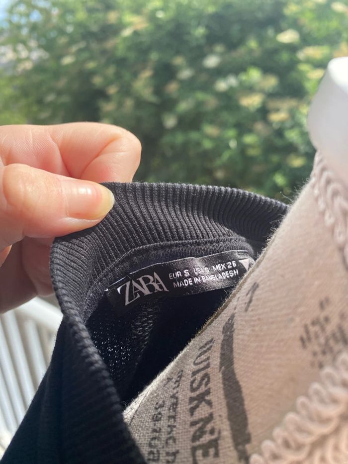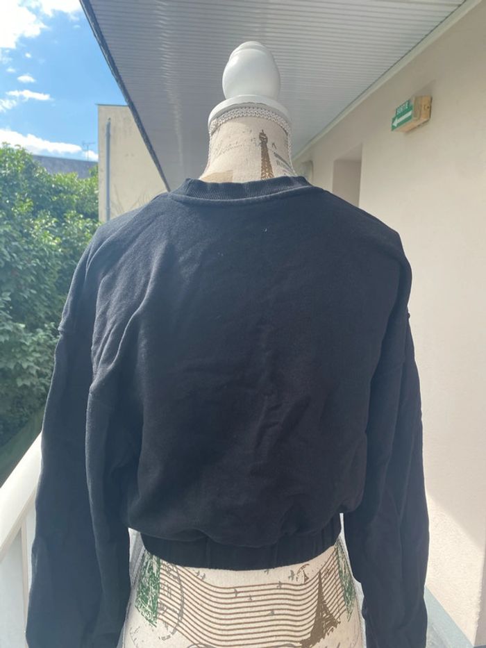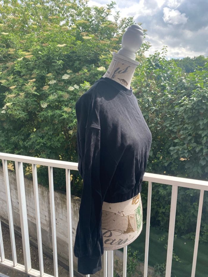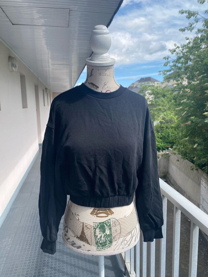 Bonjour je vends ce sweat noir uni Crop top élastiqué à la taille Marque Zara Taille S Très bon état
