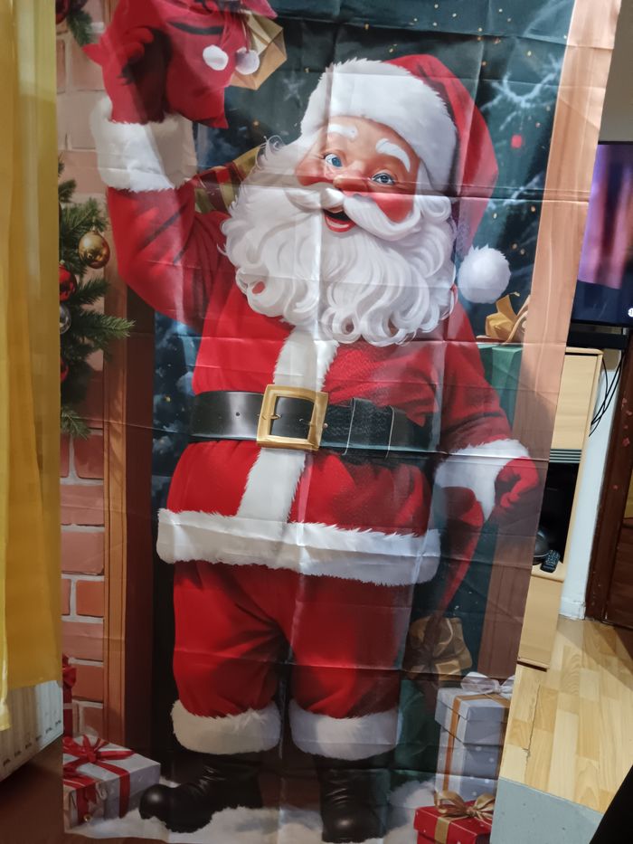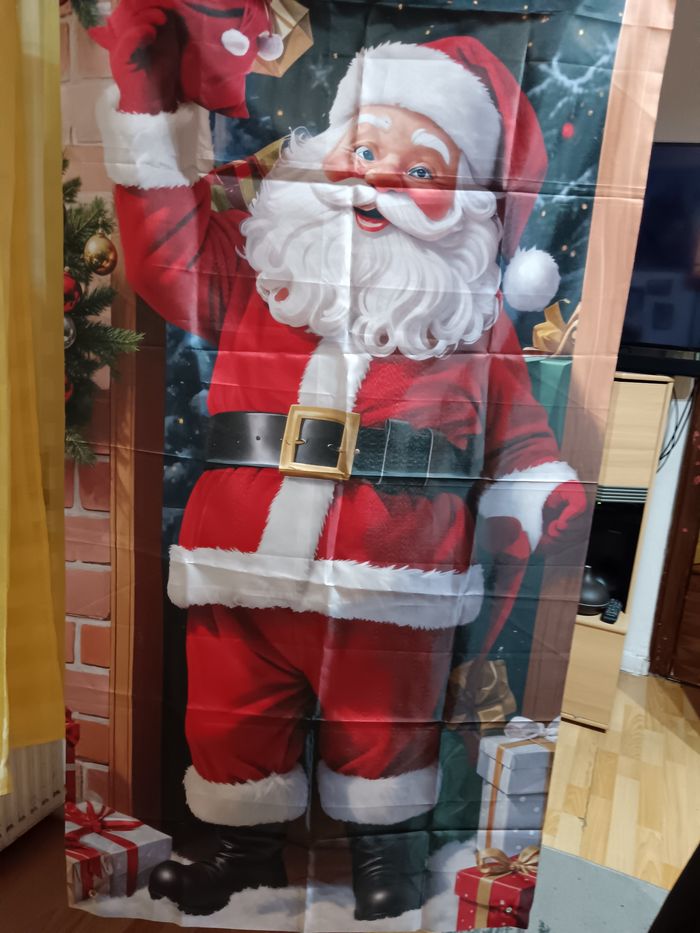 Rideau de Noël grand porte et un grand fenêtre avec anneaux en haut et bas tissu neuf jamain utilisé très beau