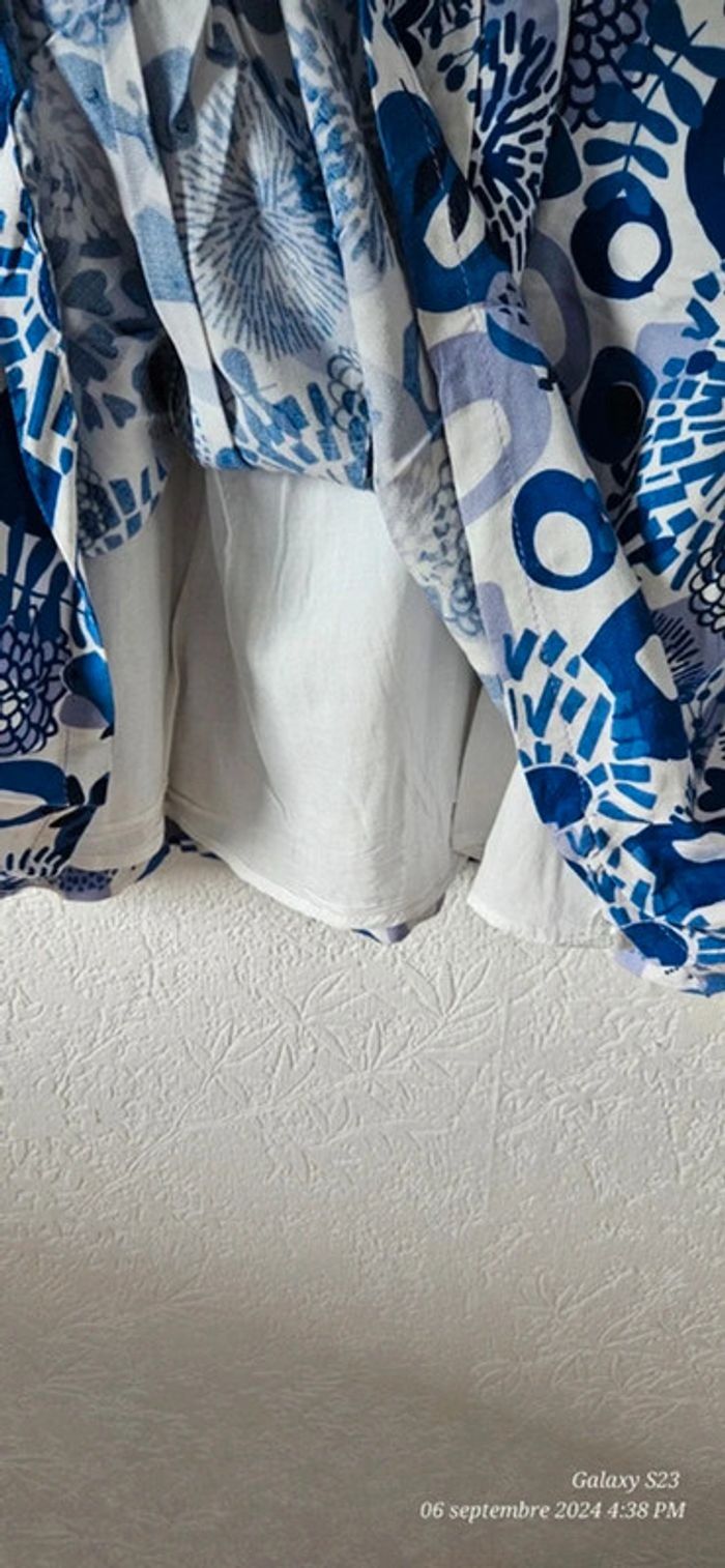 Robe fluide, doublée, manches courtes. Gilet en coton. Ensemble en excellent état. Étiquettes coupées 8 ans, du pareil au même
